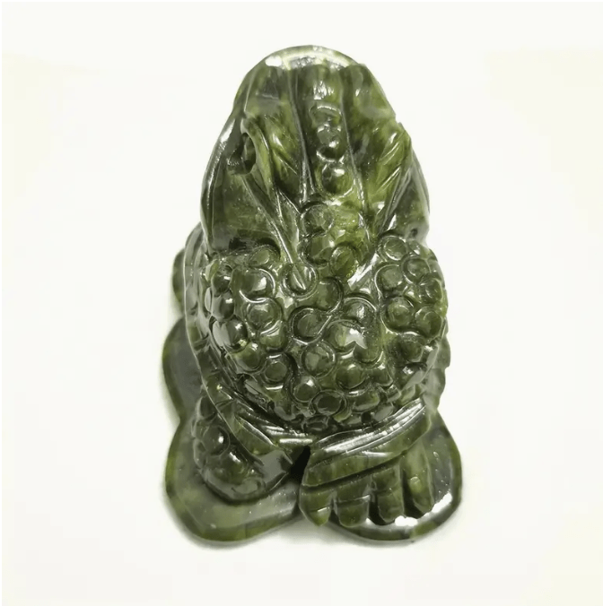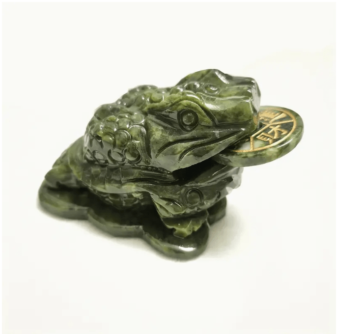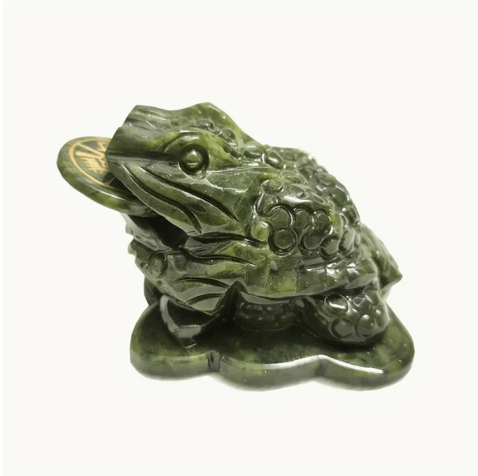 The feng shui money frog, better known as the three-legged toad, is a popular Chinese symbol that is used as a feng shui adjustment to attract wealth and prosperity. The three-legged toad is also connected to long life and good luck. Jade, a protective stone, Jade keeps the wearer from harm and brings harmony.