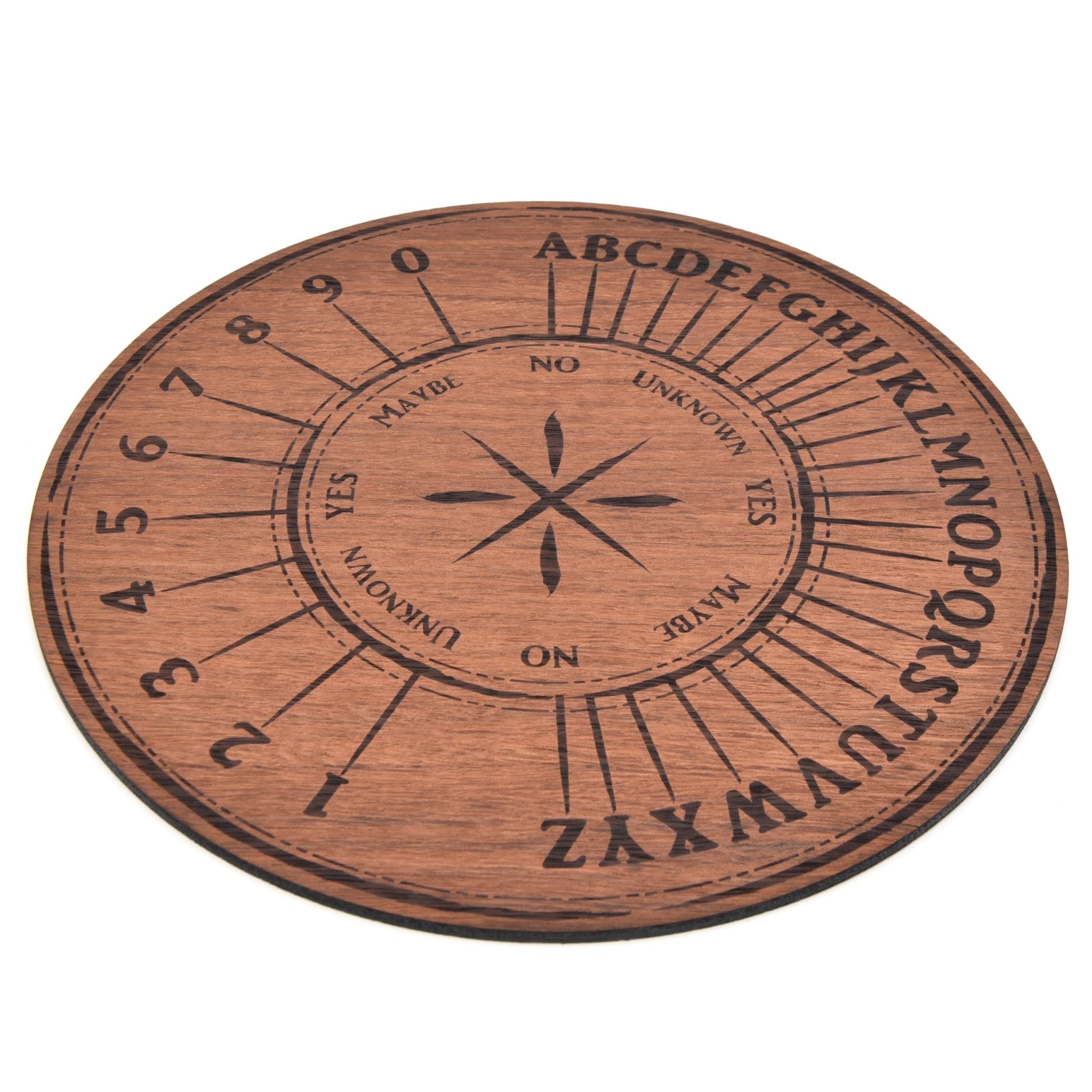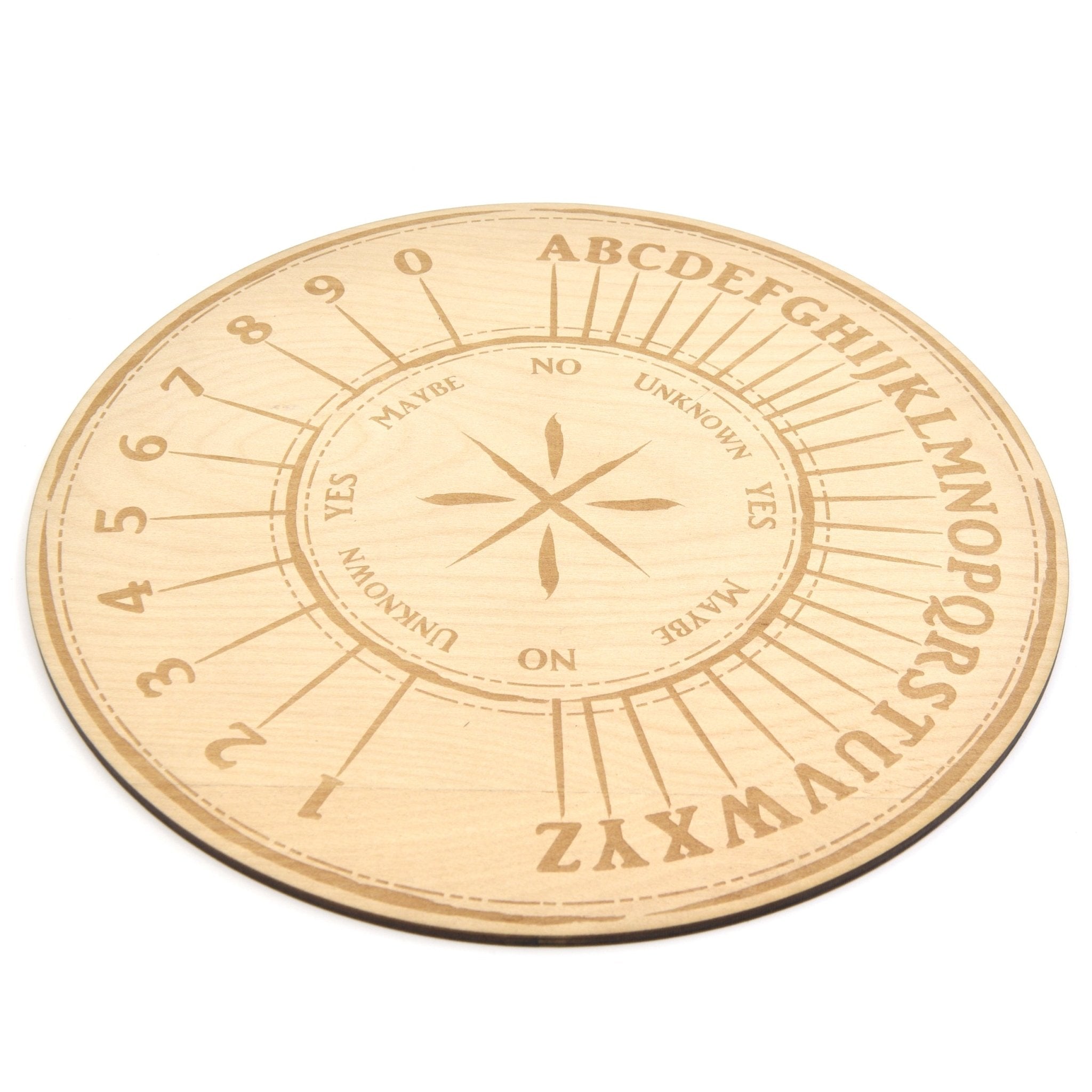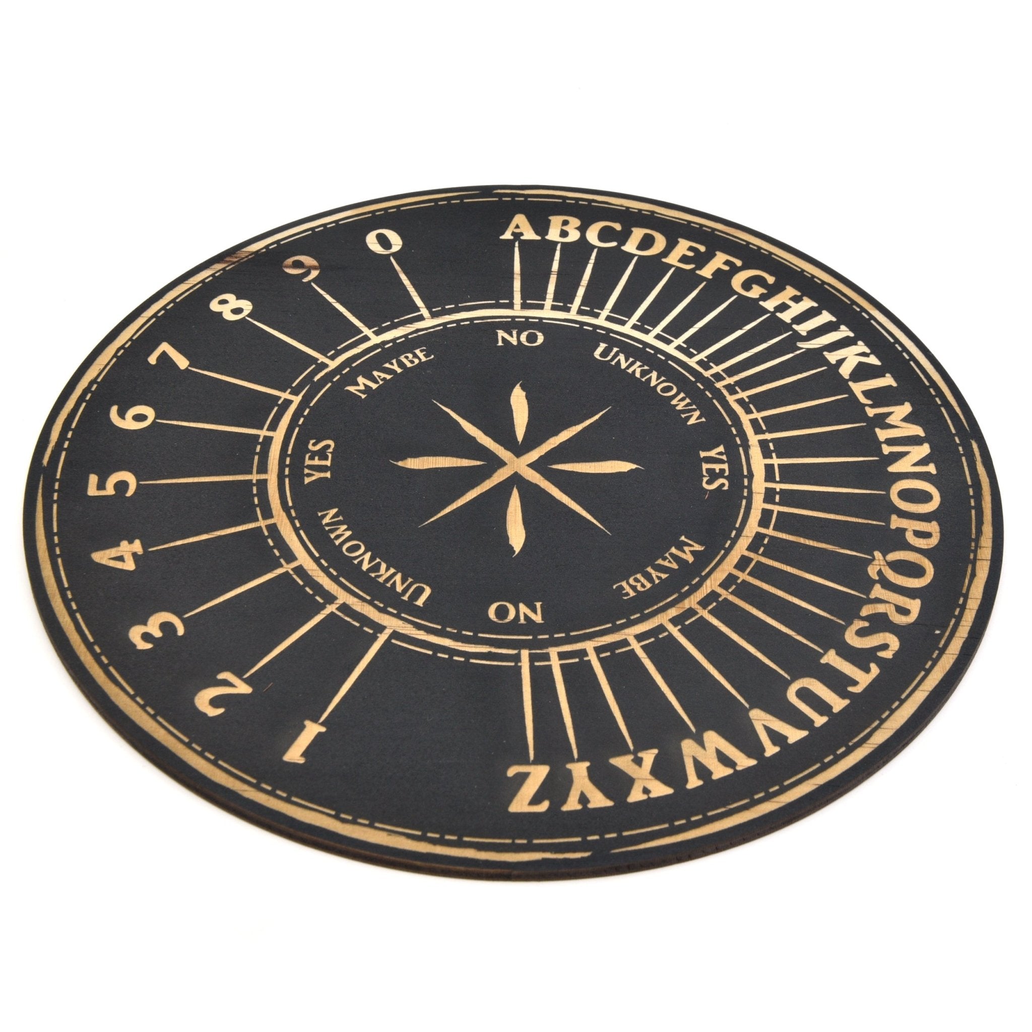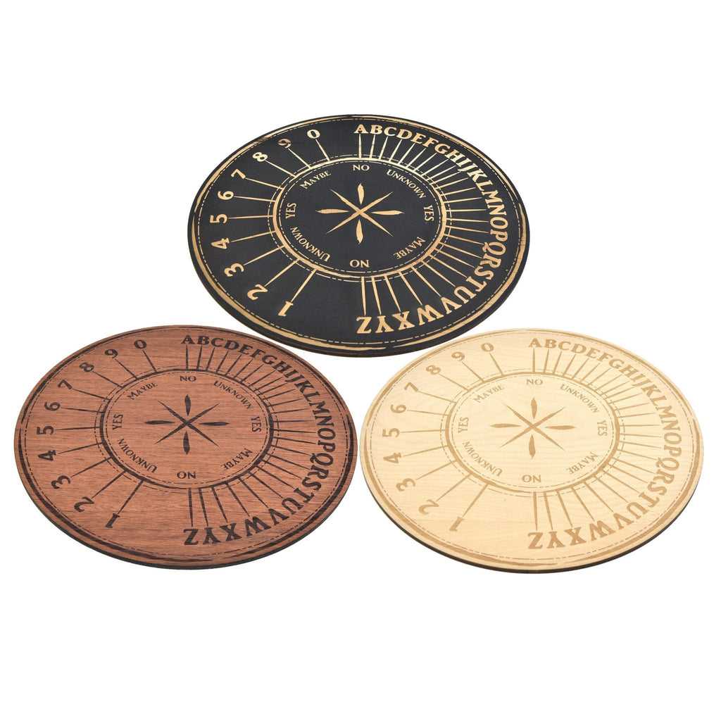 To use, simply hold your pendulum over the board in the center and ask your questions (either out loud or in your mind) and patiently see which way the pendulum will swing to reveal your answers!