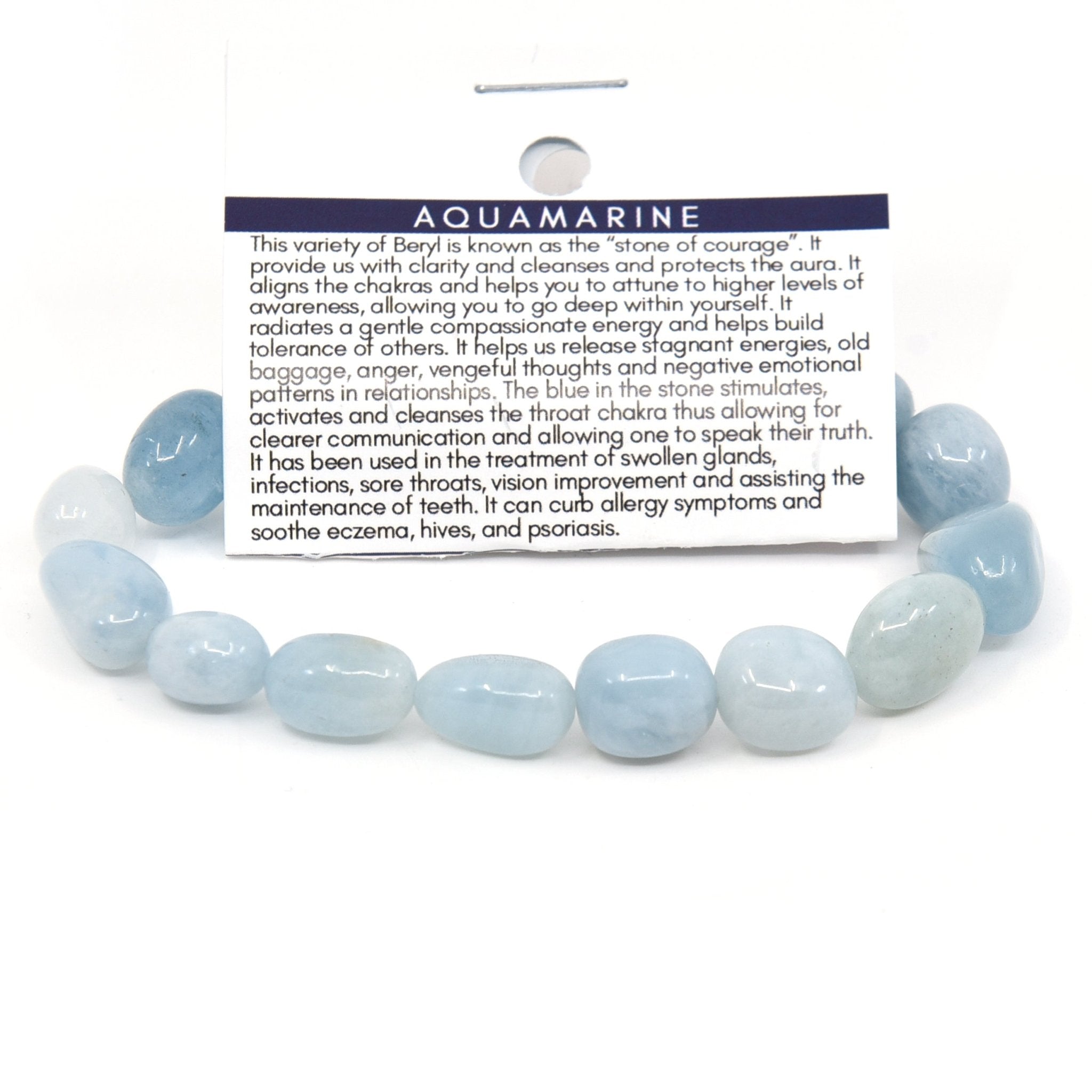 This variety of Beryl is known as the “stone of courage”. It provides us with clarity & cleanses & protects the aura. It aligns the chakras & helps you to attune to higher levels of awareness, allowing you to go deep within yourself. It radiates a gentle compassionate energy & helps build tolerance of others. It helps us release stagnant energies, old baggage, anger, vengeful thoughts & negative emotional patterns in relationships. The blue in the stone stimulates, activates & cleanses the throat chakra thus allowing for clearer communication & allowing one to speak their truth. It has been used in the treatment of swollen glands, infections, sore throats, vision improvement & assisting the maintenance of teeth. It can curb allergy symptoms and sooth eczema, hives, and psoriasis.