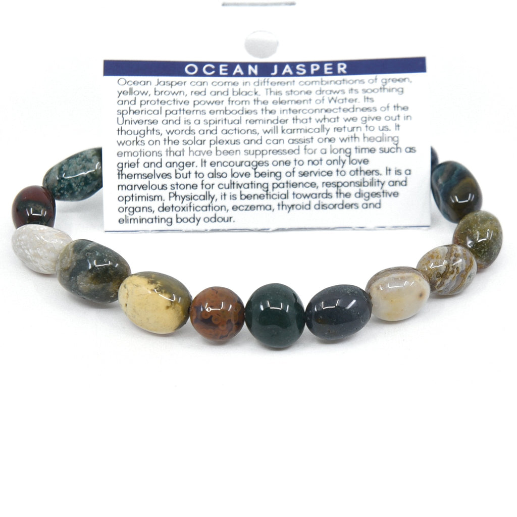 Ocean Jasper can come in different combinations of green, yellow, brown, red and black. This stone draws its soothing and protective power from the element of Water. Its spherical patterns embodies the interconnectedness of the Universe and is a spiritual reminder that what we give out in thoughts, words and actions, will karmically return to us. It works on the solar plexus and can assist one with healing emotions that have been suppressed for a long time such as grief and anger. It encourages one to not only love themselves but to also love being of service to others. It is a marvelous stone for cultivating patience, responsibility and optimism. Physically, it is beneficial towards the digestive organs, detoxification, eczema, thyroid disorders and eliminating body odour.