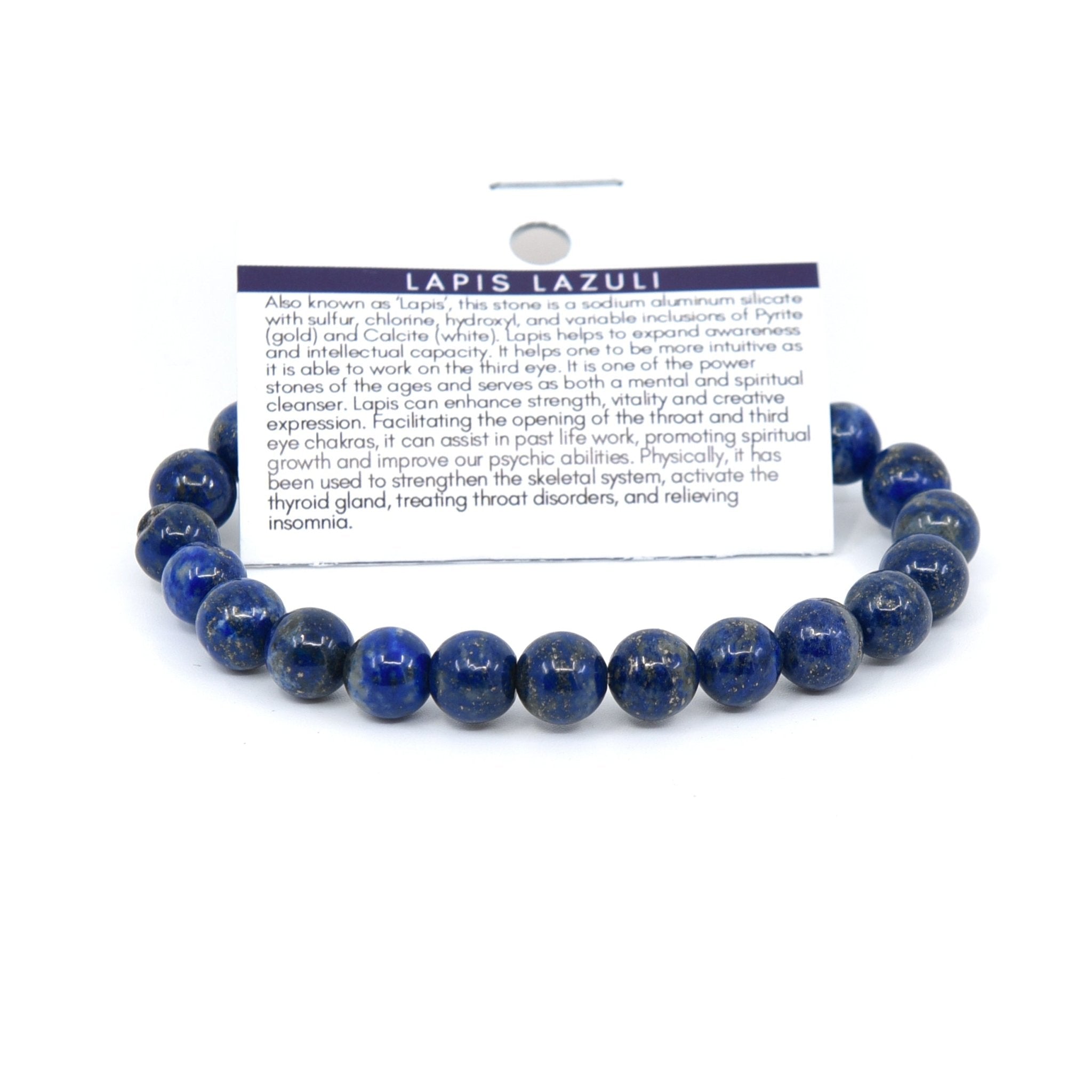 Also known as ‘Lapis’, this stone is a sodium aluminum silicate with sulfur, chlorine, hydroxyl, and variable inclusions of Pyrite (gold) and Calcite (white). Lapis helps to expand awareness and intellectual capacity. It helps one to be more intuitive as it is able to work on the third eye. It is one of the power stones of the ages and serves as both a mental and spiritual cleanser. Lapis can enhance strength, vitality and creative expression. Facilitating the opening of the throat and third eye chakras, it can assist in past life work, promoting spiritual growth and improve our psychic abilities. Physically, it has been used to strengthen the skeletal system, activate the thyroid gland, treating throat disorders, and relieving insomnia.