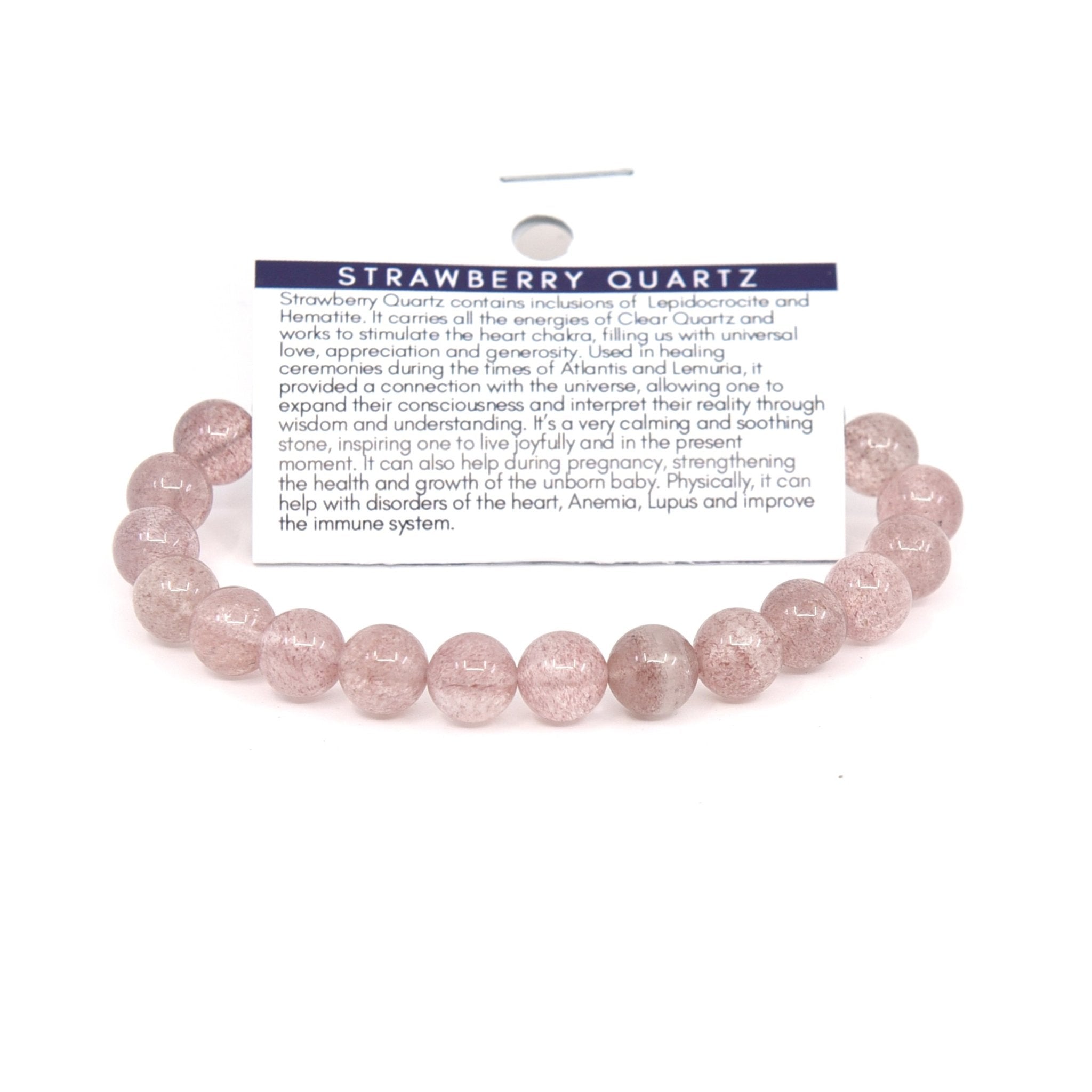 Crystal Bracelet - "Quartz (Strawberry)" Round 8mm