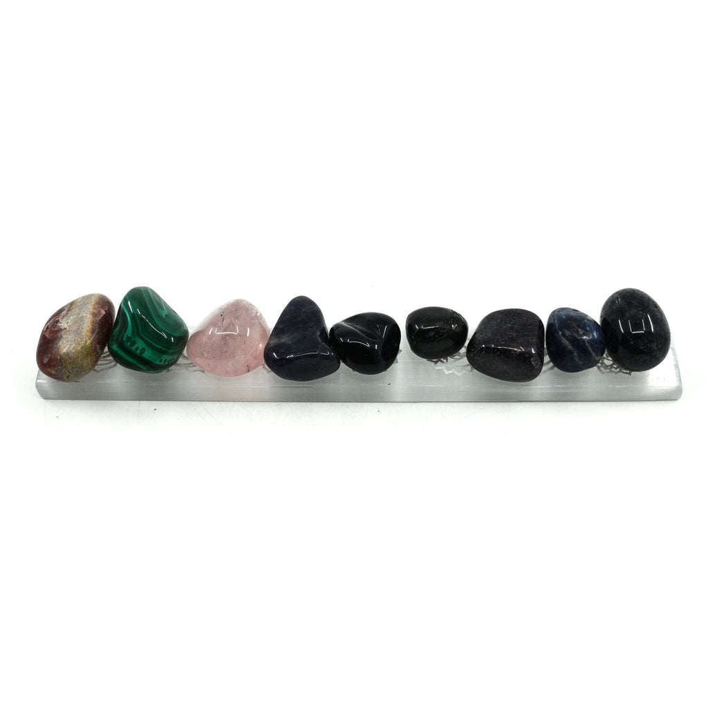 This Selenite charging plate can be used to recharge your crystals or jewellery.  Tumbled crystals in the photo are for demonstration purposes only and are not included.