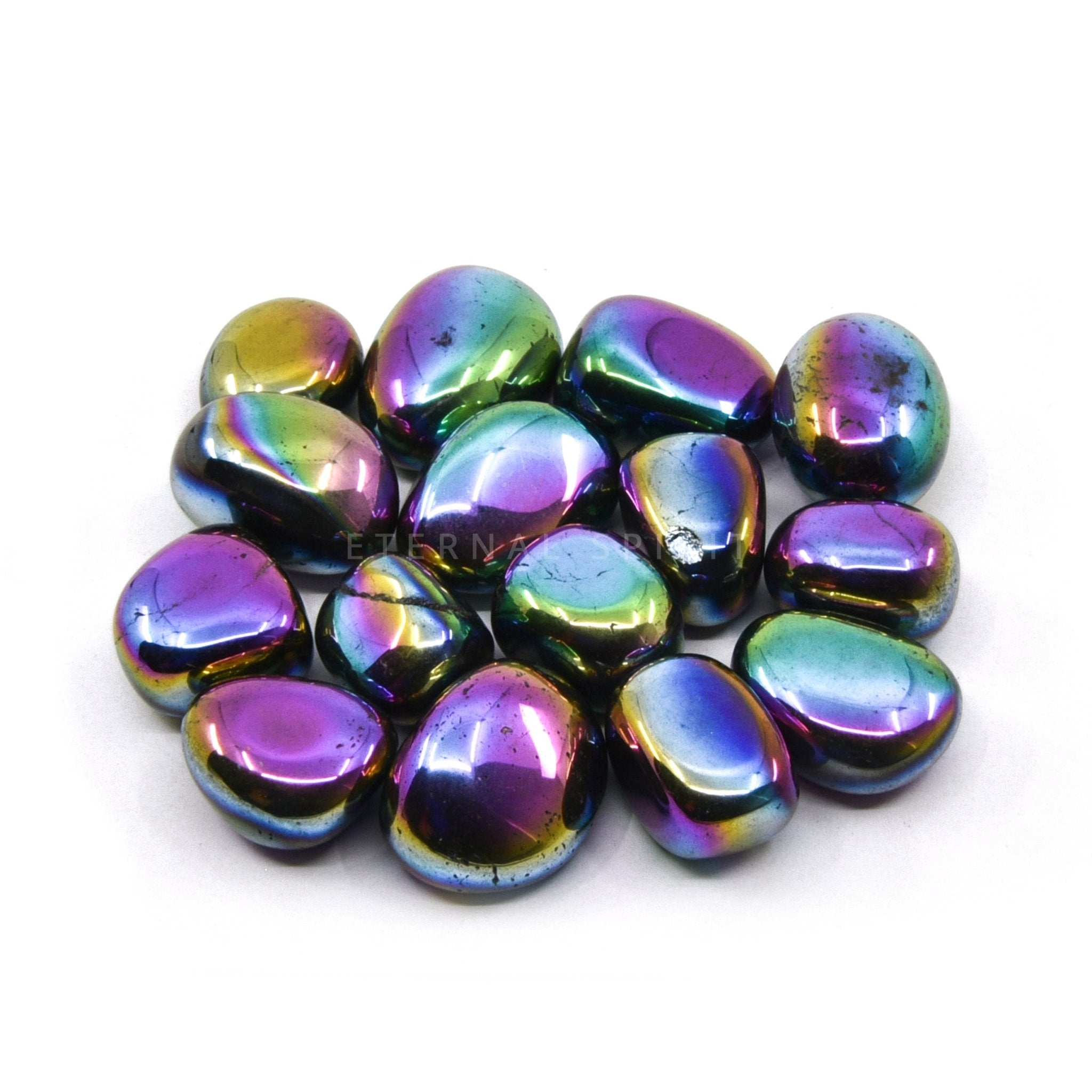 Also known as “Titanium Aura Quartz”, these crystals are Clear Quartz that have been “electroplated”, a chemical process that causes metal ions to bond to the surface of the Quartz, creating an iridescent metallic sheen depending on the types of metal(s) used. This crystal activates all of the energy centers of the body and clears a path for the life force to manifest, thus bringing in vibrant energy and a zest for life. It is a wonderful healer and helps to release negative emotions such as resentment or grief from the past. It aids in releasing karmic ties that are hindering relationships, making them vital and harmonious. Physically, it can help heal the pancreas, liver, spleen, and gall bladder. It is also said to be cleansing and helpful for the removal of toxins.