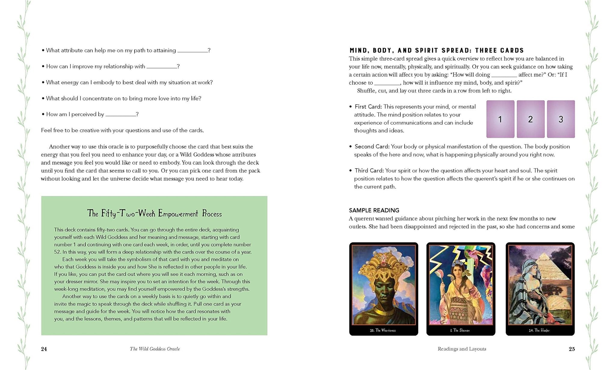 The fully illustrated guidebook offers grounded, easy-to-understand explanations of the cards as well as rituals, meditations, affirmations, earth magic spells, and more to help you activate the power of the Wild Goddesses in yourself. The book also gives a detailed look at the many spreads, practices, and concepts that can be used with the deck, providing deep insights into how each goddess helps illuminate our contradictions, our complex natures, and the endless mystery of who we are.