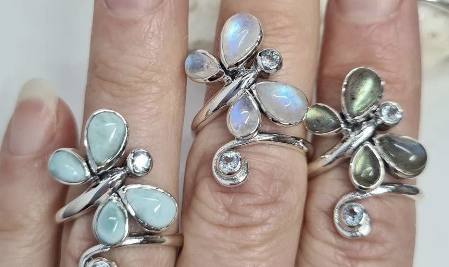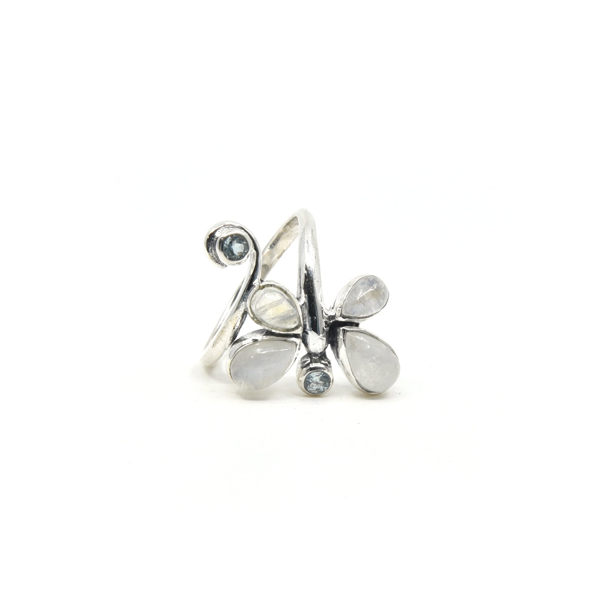 Rainbow Moonstone + Blue Topaz |