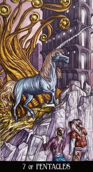 The archetypes and traditional iconography of the Tarot are respected and the setting is tinged with fantasy.